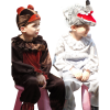 Costum compus din haina lungă din panza naturală franjurită cu glugă aplicată pe aceasta.